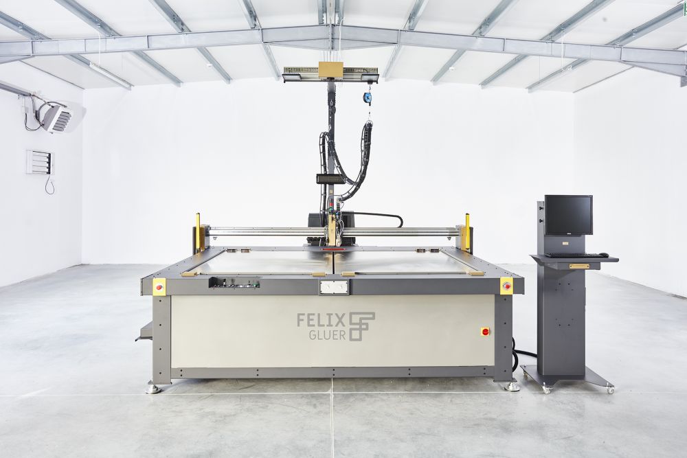 FELIX Single is a large format XY Glue Plotter Table. The design of the machine allows for up to two operators to use the machine at one time. Both hot melt and cold PVA glues can be applied with extreme position in bead, microdot and/or spray application modes. Multiple jobs can be glued simultaneously in different areas of the machine for maximum productivity and versatility. Felix SINGLE is available in a range of different sizes to suit all requirements.